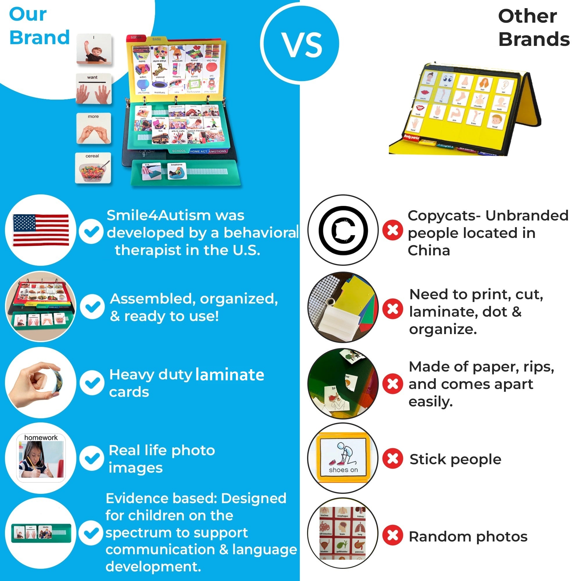 A strong, durable, ready-to-use plastic communication book designed to help nonverbal children express their wants, needs, and emotions. Perfect for home, school, and therapy.