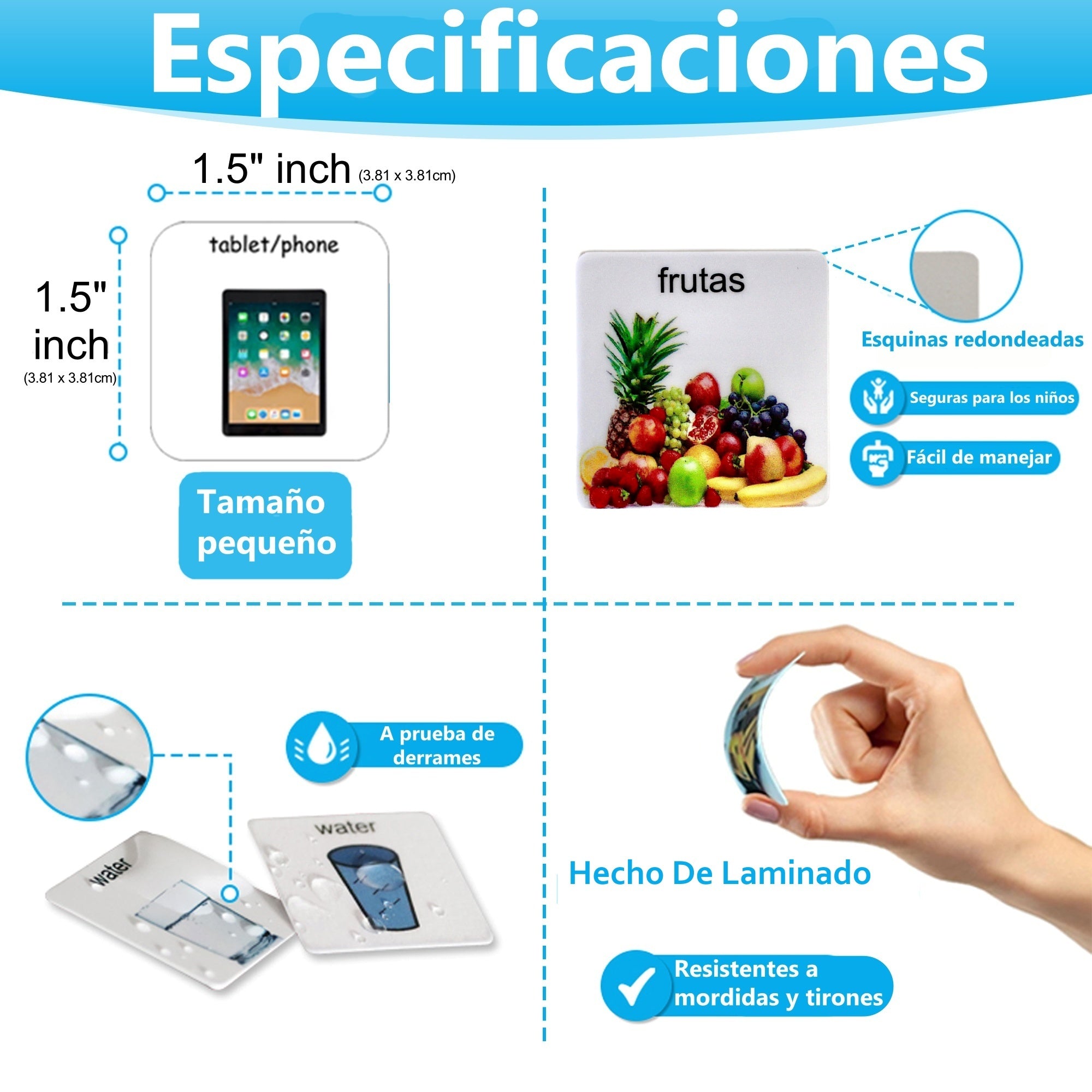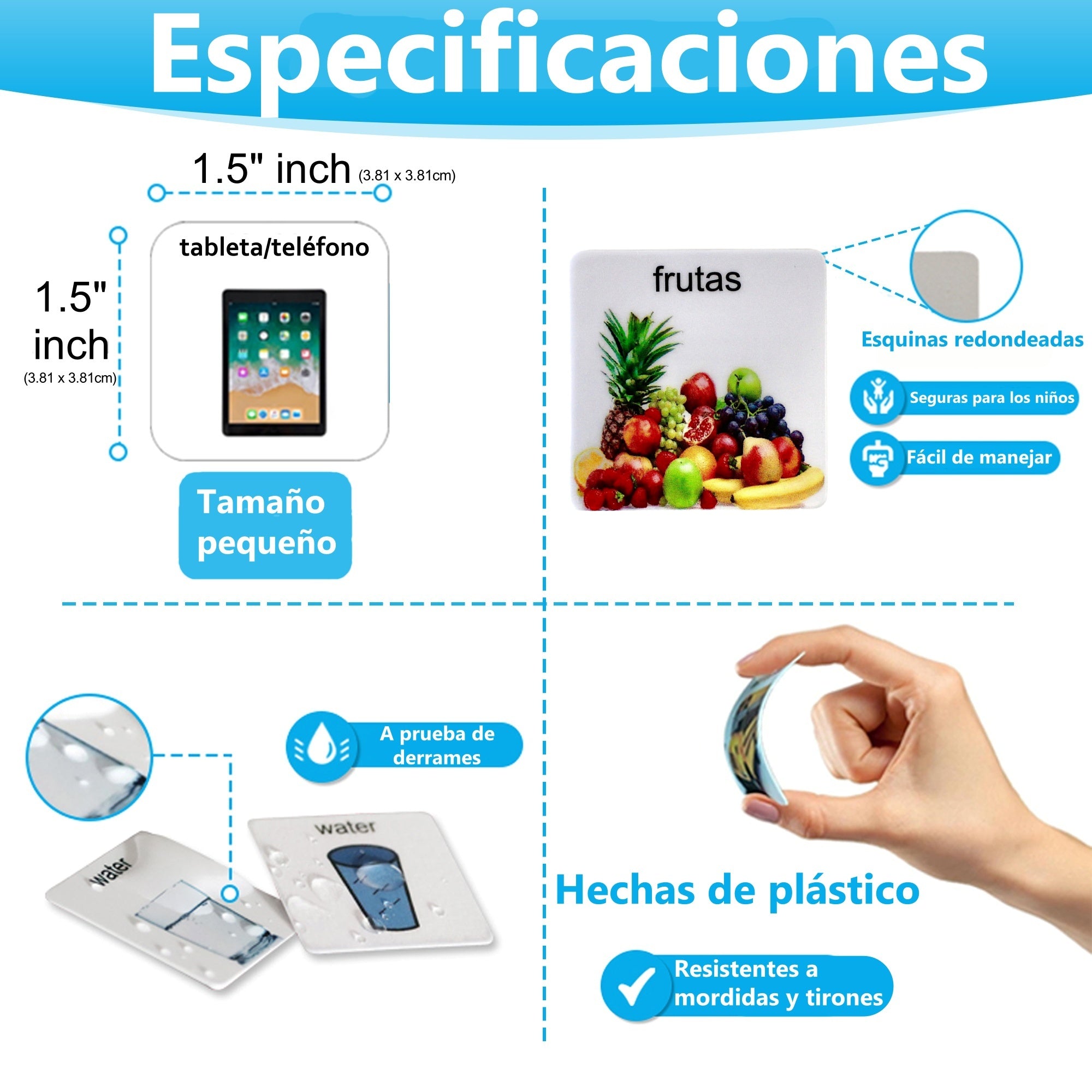 - Listo para usar: no requiere impresión, corte, pegado, puntos o laminado. Cada kit llega listo para usar, perfectamente organizado en su propia caja de almacenamiento con las ocho categorías más utilizadas: alimentos (30 piezas), juguetes (31 piezas), escuela (15 piezas), lugares (15 piezas), actividades en el hogar (15 piezas), carteles (15 piezas), emociones (15 piezas), y acciones (15 piezas). Cada tarjeta está hecha a mano con un tamaño estándar de 1.5 x 1.5 pulgadas, con esquinas redondeadas para garantizar que sean seguras para manos pequeñas, sin arañazos ni pinchazos.